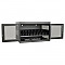 The cabinet also provides clutter-free organization of devices and cabling. AC outlets, power adapters and cords store out of sight. A toolless trim panel permits quick service access.