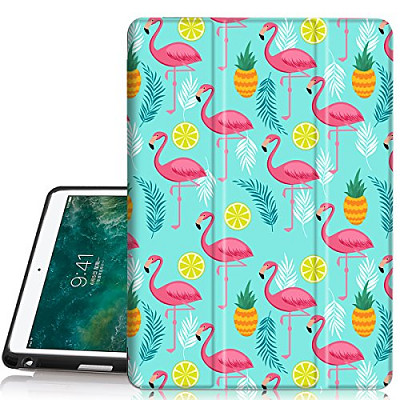 [해외]아이패드 Pro 10.5 Case, Hocase Trifold Folio Smart Case with 애플 Pencil Holder, Unique Pattern Design, Auto Sleep/Wake Feature, Soft TPU Back Cover for 아이패드 Model A1701/A1709 - Pink Flamingo/Teal 요약정보 및 구매