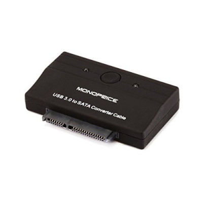 Are you looking for a temporary simple low-cost external drive solution for your USB 3.0 equipped PC? The Monoprice USB 3.0 to SATA Converter Cable is what you're looking for! This kit comes with a USB 3.0 cable a converter box with a SATA drive connector (for 2.5" and 3.5" internal SATA hard drives and 5.25" SATA optical drives) and an AC power adapter. The converter is compatible with any internal SATA drive: 2.5" or 3.5" HDD or 5.25" optical; SATA I SATA II or SATA III. When used with a USB 3.0 connection and a SATA III drive this device allows transfer rates of up to 5 Gbit/s more than ten times faster than USB 2.0 and 50% faster than SATA II internal connections! To use it simply plug the SATA converter into the internal SATA drive then plug the USB cable into the converter and your PC and plug in the power. The converter will allow the drive to be recognized by your computer as a USB device the same as if you had installed it into an external enclosure. Although this isn't ideal as a long-term solution because of the exposed drive circuits it is an excellent way to quickly transfer data to or from an internal drive without going through the hassle of installing it into a PC or an external enclosure.