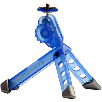 The Mini is a modified, "made-for-fun" version of the UltraPod I. The same basic design, except the legs are slightly shorter and trimmed at an angle like the UltraPod II. It is molded in translucent "edge glow" polycarbonate resin, in vibrant orange, yellow, or blue, with metallic silver feet. The strap is colored Velcro "one wrap" and designed to be easily removable. This is designed to be a fun tripod for use with small digital cameras, web cams and more. Can also be used to mount remote flashes to light stands using the Velcro strap. This is a very sharp looking tripod and attracts the attention of everyone that sees it. Weight: 1.7oz.