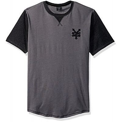 Baxter short sleeve crewneck tee featuring contrast sleeves, neckline, and logo, shirttail hem, and Zoo York chest logo