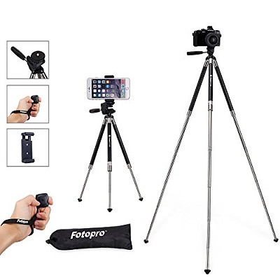 iPhone Tripod, Smartphone Tripod, Fotopro 39.5 Inch Aluminum Camera Tripod + Bluetooth Remote Control + Smartphone Clip Mount + Tripod Bag