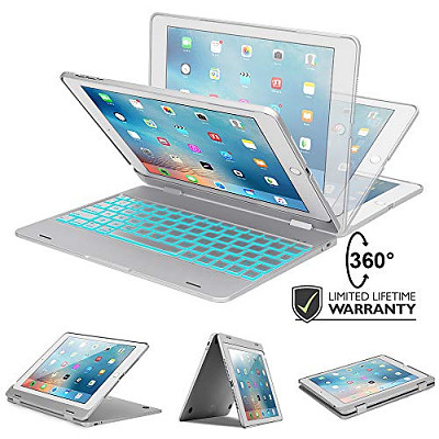 [해외]아이패드 Keyboard Case for 아이패드 9.7 2018 (6th Gen) - 아이패드 9.7 2017 - 아이패드 Pro 9.7 - 아이패드 Air 2 & 1 with 7-Color Backlight, 360 Rotatable, Slim & Light, Auto Sleep/Wake -iPad Case with Keyboard 9.7 Silver 요약정보 및 구매