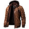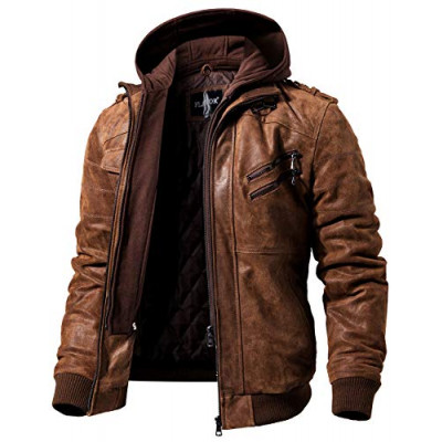 FLAVOR Men Brown Leather Motorcycle Jacket with Removable Hood (Medium (US Standard), Brown)