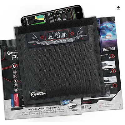 ✅ Shields cell phones, GPS units, electronic toll collection transponders (like E-ZPass), keyfobs, or other similar size devices from ALL wireless signals. EMI shielding & RFI shielding. Two layers of high-shielding fabric on all sides with dual paired seam construction. Used for forensics, military, executive travel, personal security, EMP protection, and solar flare protection.