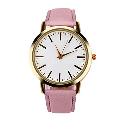 START Women&Man Simple Leather Business Analog Quartz Wrist Watch-Pink