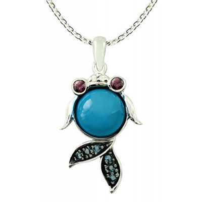 RB Gems Sterling Silver 925 Pendant Necklace Genuine GEMS 12 mm with Rhodium-Plated Finish, Fish Design (Turquoise)