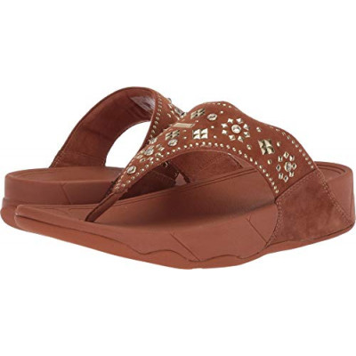 [해외]핏플랍 Womens LULU Aztek Stud Toe-Thong Sandals-Suede, Caramel, 7 M US
