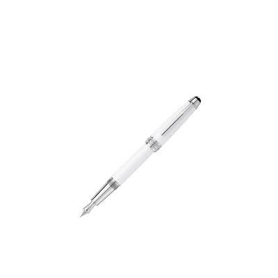 The Meisterstück White Solitaire Classique features classic design and expert craftsmanship that is distinctly Montblanc. The metal cap and barrel are finished in precious white lacquer and accented by platinum-coated fittings. Medium nib is rhodium-coated 18K gold. The finishing touch is a platinum-coated finial inlaid with the iconic Montblanc snowcap in black and white precious-resin. Dimensions: 139.5mm capped, 122mm uncapped, 14mm cap-width, 12mm barrel-width. Piston-converter fountain pen. Threaded cap. Made in Germany.