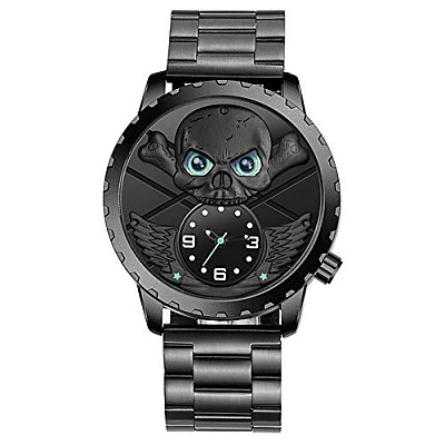 [해외]Mens Black Skull Head Watch Stainless Steel Band Owl Green Eyes Punk 시계 (Black) 요약정보 및 구매