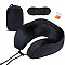 [해외]SAIREIDER Travel Neck Pillow Airplane Sleeping Adjustable U-Shape 100% Pure Memory Foam Neck Cusion with Portable Bag, Sleep Mask and Earplugs Y-Black