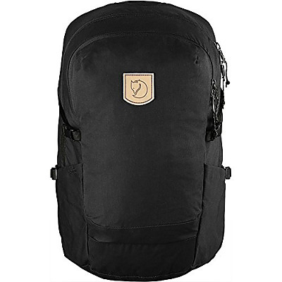 Lightweight, versatile daypack for hiking or commuting on foot or by bicycle. Made from durable G-1000 Eco in recycled polyester and organic cotton. The carrying system is light and stable with comfortable padded shoulder straps and a mesh back panel. There is also a chest strap with a whistle and hip strap that can be stowed behind the back panel when not in use. The main compartment has a zippered opening and an inside security pocket with a key clip. There is also an open pocket that is big enough to hold a 15 inch laptop computer, or that can be used to carry a hydration bladder (not included). A front pocket with zipper and inside pocket have room for items you want to keep close at hand, and there are two expandable side pockets with strap adjustments. Compression straps on the sides stabilise the contents of the pack when it is not fully loaded. The G-1000 Eco fabric is waxed and resists moisture. For persistent rain there is a rain cover provided that can be stowed in one of the inside pockets.