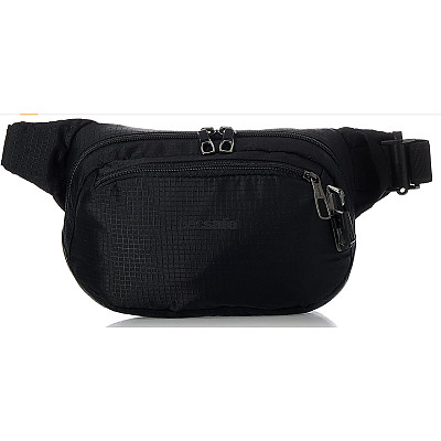 The Vibe 100 anti-theft hip pack from Pac safe has six anti-theft features built in, providing peace of mind and helping you move securely. The bag's fabric is embedded with a lightweight flexible, stainless steel wire mesh that protects your gear from a quick cut-and-run theft. Flexible, lightweight Stainless steel wire also runs through the adjustable waist strap to help prevent thieves from slicing through and running off with your gear. The bag Includes a lockable security clip on the waist strap, as well as zippers that interlock and can be secured to the bag's locking system, which locks down the all zippers in one place, helping prevent pickpockets. The zippered main compartment includes an RFID blocking pocket that prevents your data (such as from e-passports, credit cards, and key cards) from falling into the wrong hands, and a separate front pocket for organization. With a wealth of organizational options, two zippered pockets, and a padded iPad mini/7-inch tablet compatible sleeve, The spacious and comfortable Vibe 100 is ideal for carrying everyday necessities on adventures abroad or around town. The Vibe 100 weighs 11.5 ounces, and has a volume of 4 liters. Pac safe is all about secure mobility. With a wide range of stylish adventure backpacks, everyday bags, women's bags, camera bags, luggage, and travel accessories, Pac safe lets you unpack the stress of protecting your gear, and instead, pack peace of mind.