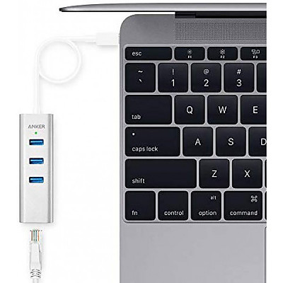 Aluminum Portable USB-C to 3-Port USB 3.0 Hub with Ethernet Adapter