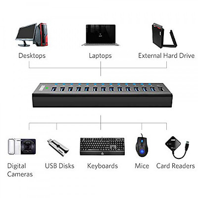 Don't deny your devices access to SuperSpeed ports. With transfer rates of up to 5Gbps, set aside less time for syncing and more time for work. (Note: actual rate will depend on the capability of your device.) With 13 data terminals to choose from, forget about ever having to switch or unplug again.