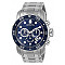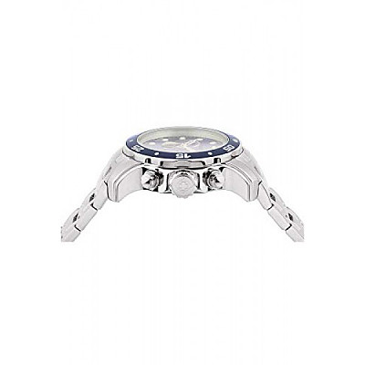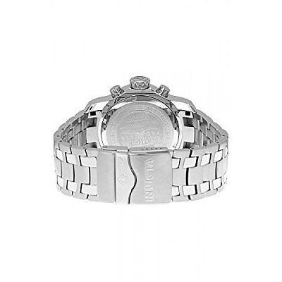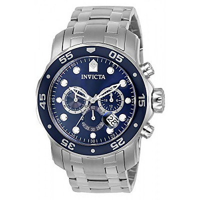 Classic chronograph styling with contemporary features, the Invicta Men's Pro Diver Collection Chronograph Stainless Steel Watch features a brushed and polished stainless steel case and a band that closes with a fold-over safety clasp. The stainless steel case provides an ideal foundation for this watch's rotating bezel with minute markers and its attractive blue dial. The dial has luminous hands and hour markers, and three subdials at the two, six, and 10 o'clock position. There's also a magnified date window at the four o'clock position to help you keep tabs on your busy schedule. For added style, Invicta included a large crown and two bold buttons on the right-hand side of the case. Other features include precise chinese quartz movement, a durable flame-fusion crystal, and water resistance to 660 feet (200 meters).
