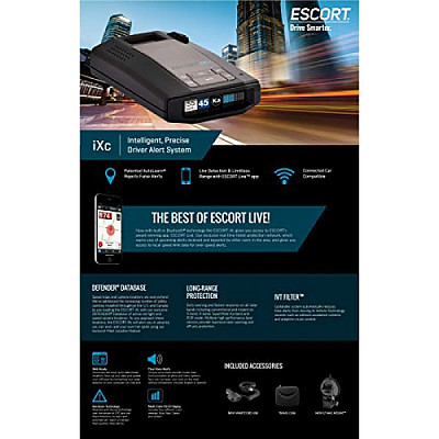 The Escort Ixc Police radar detector offers the best of radar detectors for cars and carries on the tradition of the Escort IX, now with improved detection range, enhanced antifalsing precision, and all the benefits of new connected car compatibility