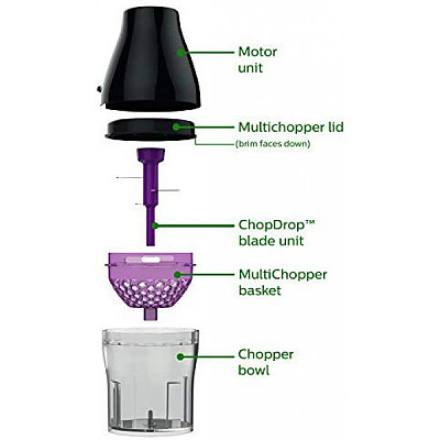 At last, you can chop like a chef. The Philips Multichopper with ChopDrop™ technology dices ingredients such as onion, cheese, nuts and more into perfectly sized pieces, every time. The unique basket holds your ingredients while 3 stainless steel blades chop to perfection. Once the pieces reach the optimal size, they drop from the basket into the bowl. Enjoy great tasting, good-looking homemade food with your family, every day!