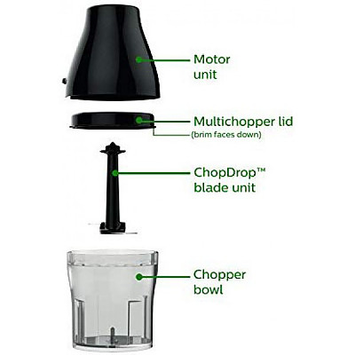 To use simply press down on the top of the MultiChopper! No extra buttons, settings or switches. Chopping like a chef with a single touch.