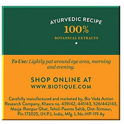 Biotique's Almond Under Eye Cream is a light nourishing cream that helps to protect delicate skin around the eyes. Contains Oils of Nutmeg, Almond, Sunflower and Quince Seed Gel that increase the brightness and add sparkle to your eyes, while reducing puffiness dark circles and fine lines around the eye.