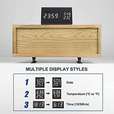 [해외] 디지탈 알람 목재 형태 시계, LED 표시, 습도 및 온도 감지 JALL Digital Alarm Clock, with Wooden Electronic LED Time Display, 3 Alarm Settings, Humidity & Temperature Detect, Wood Made Electric Clocks for Bedroom, Bedside, Black 요약정보 및 구매