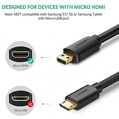 [해외] 유그린(UGREEN) HDMI 케이블 어뎁터 Micro HDMI to HDMI Cable Adapter 4K 60Hz Ethernet Audio Return Compatible for GoPro Hero 7 Black Hero 5 4 6, Raspberry Pi 4, Sony A6000 A6300 Camera, Nikon B500, Lenovo Yoga 3 Pro, Yoga 710 3FT