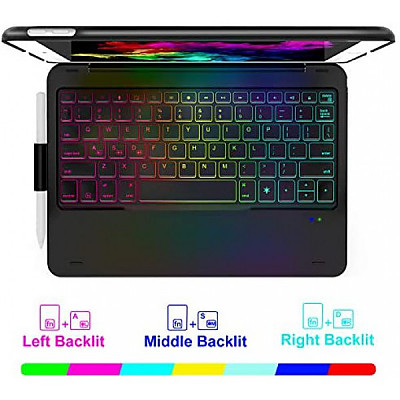 [해외] Earto 아이패드 7세대(10.5인치) 분리형 무선 백라이트 키보드케이스(Black) iPad 10.2 Case with Keyboard for iPad 7th Gen 2019 - iPad Air 10.5 2019 - iPad Pro 10.5 2017-343 DIY Backlits/7 Colors Backlit - Detachable Wireless Magnetic Keyboard - Smart Auto Sleep/Wake