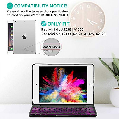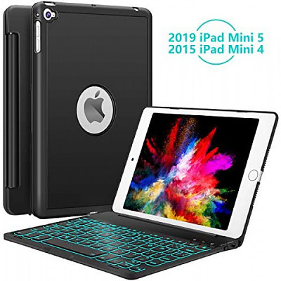 [해외] Earto 아이패드 미니 5세대/4세대 백라이트 스마트 폴리오 키보드케이스(Black)iPad Mini 5 / Mini 4 Keyboard - 135 Degree Flip 7 Color Backlit Aluminum Shell Smart Folio Keyboard Case with Auto Sleep/Wake for iPad Mini 5th Gen 2019 / iPad Mini 4 2015, Black 요약정보 및 구매