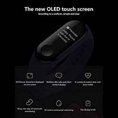[해외] 샤오미 미니 밴드 3 OLED 디스플레이 방식, 운동, 방수, 심장박동수 모니터링 Xiaomi Mi Band 3 Fitness Tracker 50m Waterproof Smart Band Smartband OLED Display Touchpad Heart Rate Monitor Wristbands Bracelet, Black (+0원)