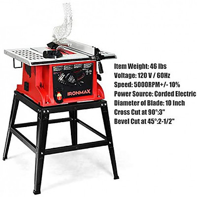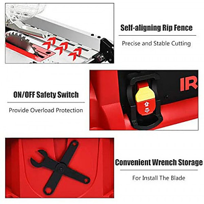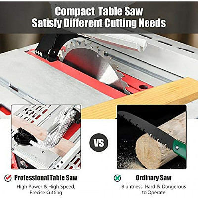 [해외] Goplus Table Saw, 10-Inch 15-Amp Portable Table Saw, Cutting Speed Up to 5000RPM, 45º Double-Bevel Cut, 36T Blade, Aluminum Table, Benchtop Table Saw with Metal Stand, Sliding Miter Gauge 요약정보 및 구매