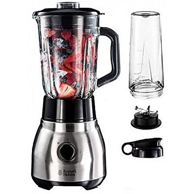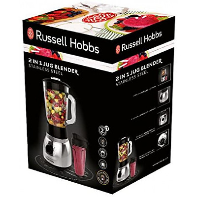 [해외] Russell Hobbs 2-in-1 믹서 블랜더(1.5L/독일내수용/220V사용가능) Standmixer Glas Steel 2-in-1, inkl. To-Go-Becher & Deckel, 1.5l Glasbehälter, Mixer 0.8 PS-Motor, Impuls-/Ice-Crush Funktion, mini Smoothie-Maker 요약정보 및 구매