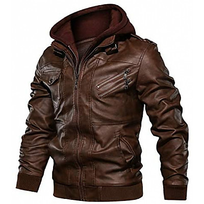 [해외] JYG 남성 모터사이클/바이크 가죽 잠바(후드티 분리 가능)Mens Faux Leather Motorcycle Jacket with Removable Hood